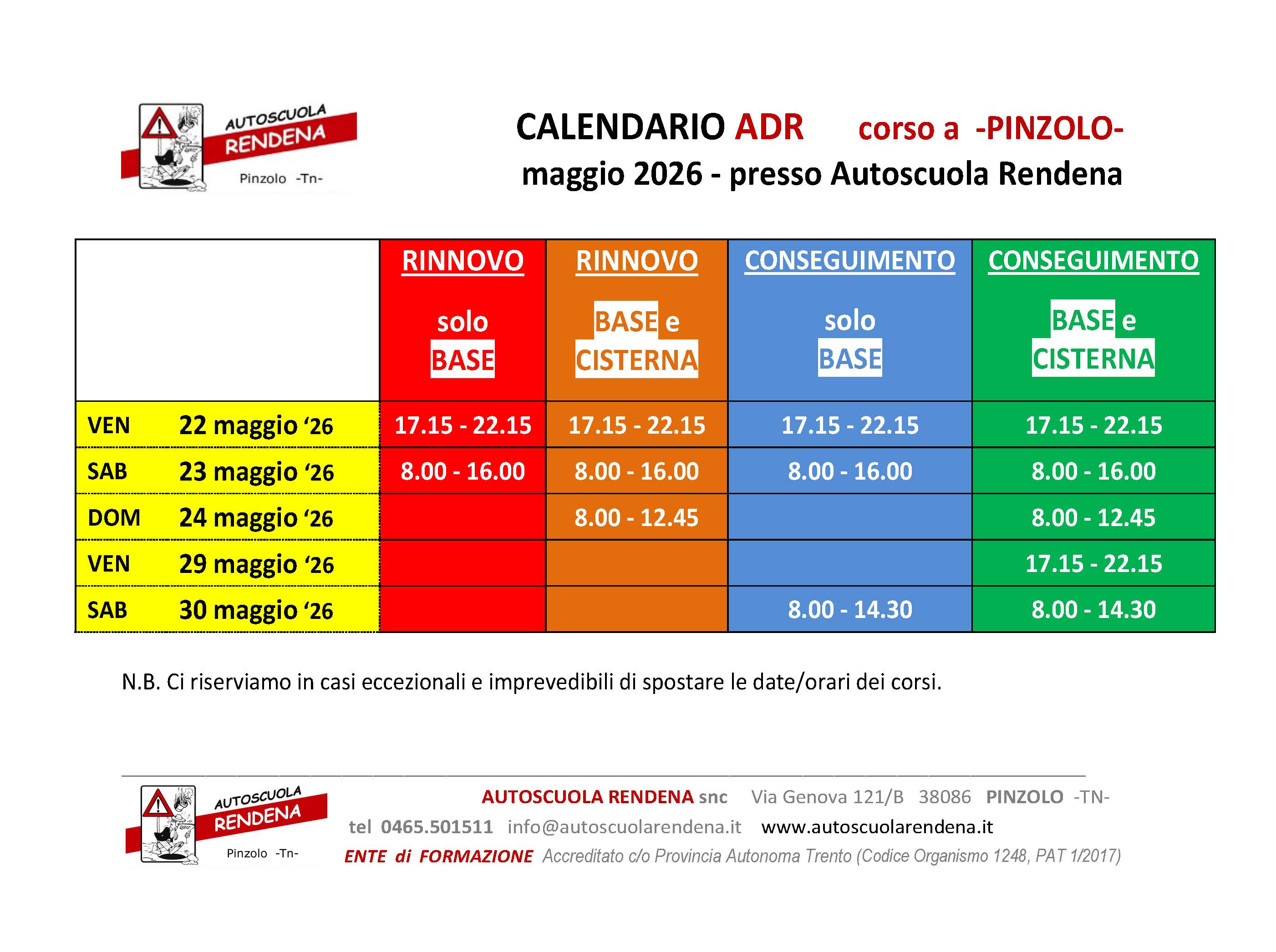 RINNOVO CQC MERCI e PERSONE | 4-5-6-7 MAGGIO 2026 | nostra sede PINZOLO | SCARICA CALENDARIO |